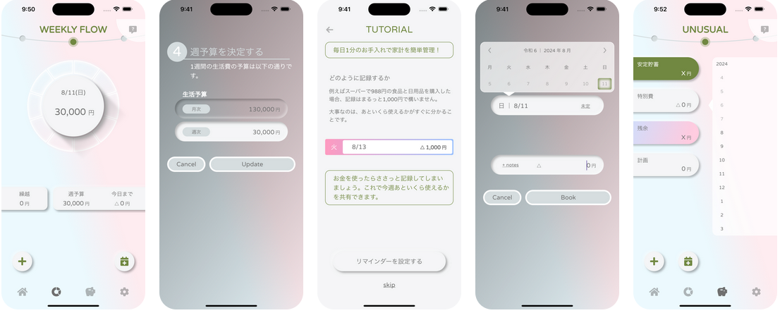 - 週単位での予算管理システム